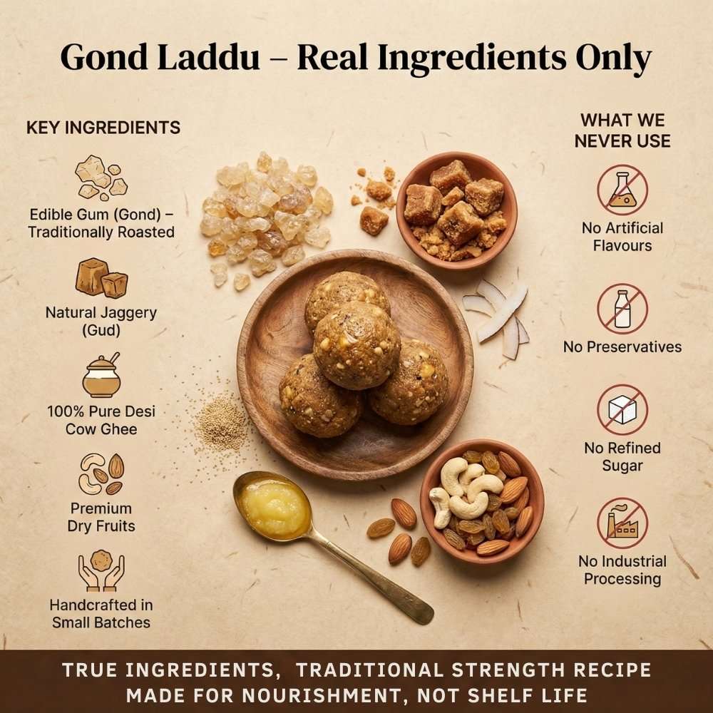 | Ingredient Quality | Traditionally prepared gond & premium dry fruits | Lower-grade or processed ingredients |