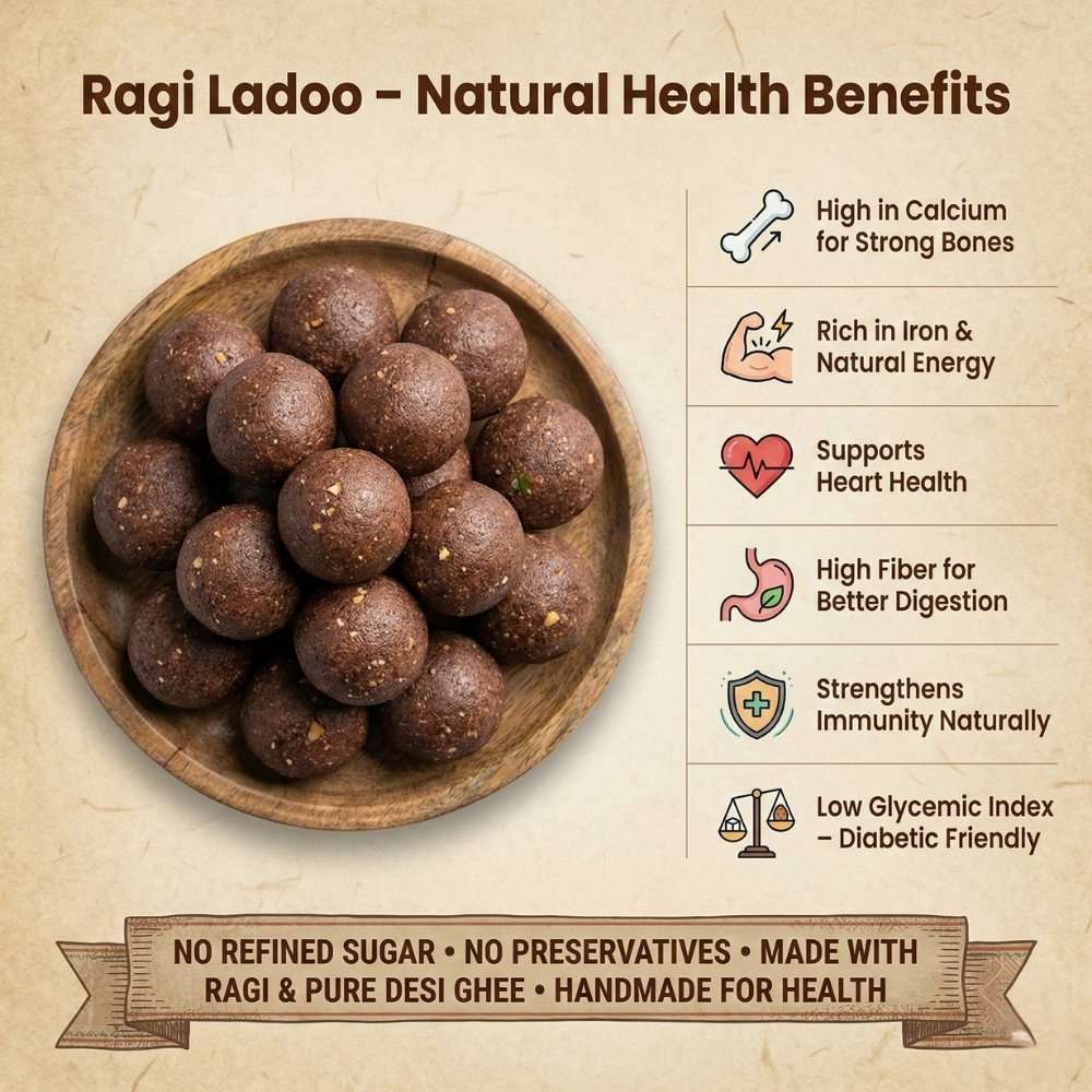 Ragi Laddu | Finger Millet Laddoo | 100% Natural, Calcium & Iron Rich Indian Sweet | Made with Desi Ghee & Organic Jaggery | Gluten-Free, No Preservatives
